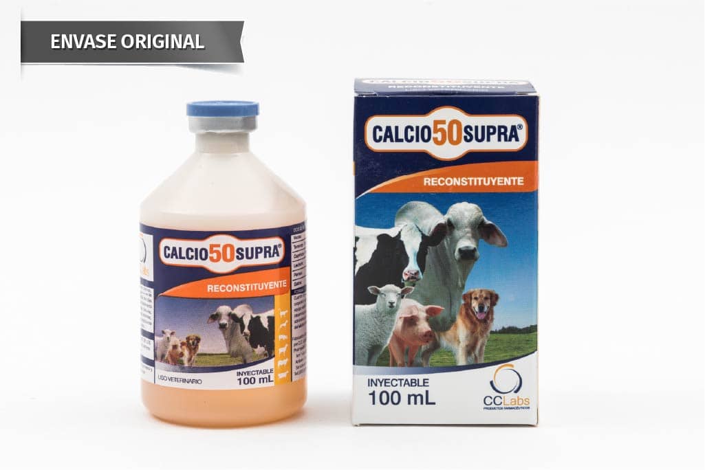 CALCIO 50 SUPRA es una solución inyectable de acción rápida que combina Calcio, Fósforo y Magnesio, ideal para tratar la hipocalcemia aguda o crónica y condiciones como tetanias y convulsiones. Indicado para bovinos, ovinos, caprinos, porcinos, caninos y felinos, es perfecto para prevenir la fiebre de leche y como apoyo antes, durante y después del parto.